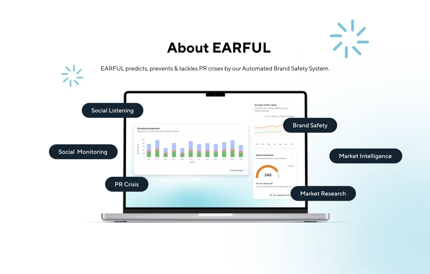 Making intangible services tangible through design was primary. Social listening is invisible—algorithms scanning posts, AI analyzing sentiment—none inherently visual. We needed brand elements communicating complex functionality quickly as clients scrolled. Positioning Earful competitively required feeling substantial enough to be trusted with reputation work, but not so corporate that it intimidated smaller businesses. The brand needed to work standalone and as part of Tango Digital family, maintaining distinctiveness without disconnection.