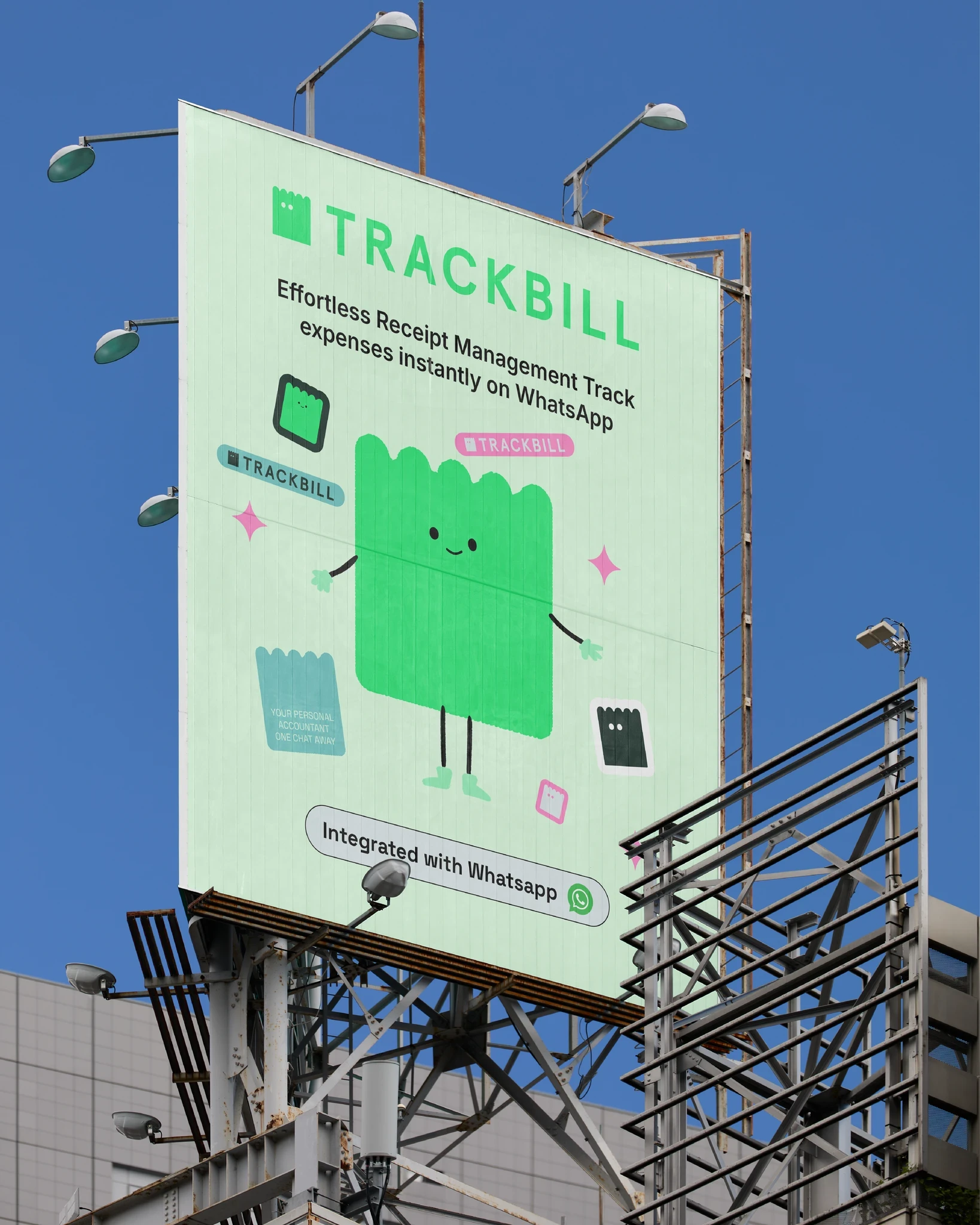 Poi Studio crafted a vibrant, youth-centric brand identity for Trackbill, a B2C fintech startup that allows users to instantly track receipts and manage finances directly through WhatsApp.